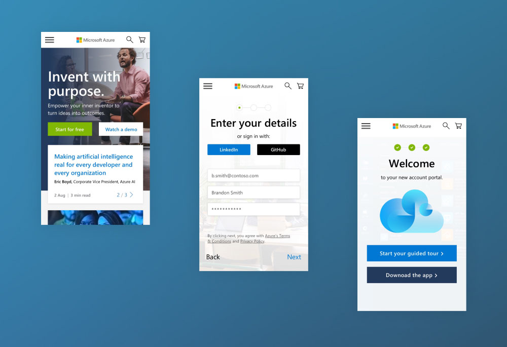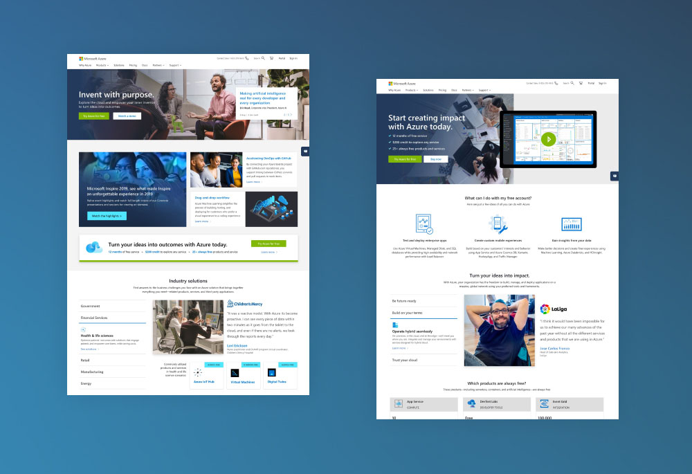 Our client, a global tech company based in Redmond, Washington, had advanced their cloud computing service to new heights in the landscape. However, as they have moved up the adoption curve into new markets, customer engagement started to drop, and free trial conversions slowed as a result. Customers further up the adoption curve needed to be presented with additional education and a simplified journey to a free trial. My team assessed their digital experience to identify ways the site could be streamlined, removing the hurdles potential new customers face when signing up.
